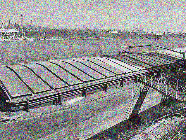 2 identical barges with steel covers.